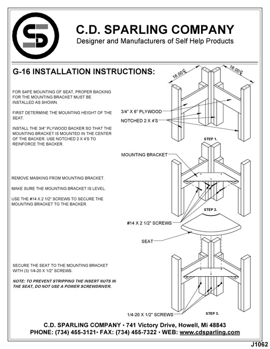 C.D. Sparling manufactures six types of tub and shower seats with most coming in six colors. Sizes range from 16" to 32" with multiple seat shapes. Whether you are looking for a permanent corner seat or a seat that neatly folds down, our products are safe and sturdy for years to come.